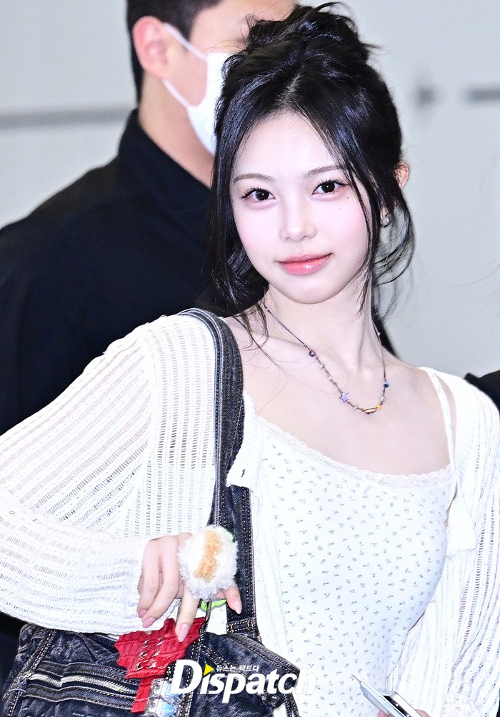 이안은 요정같은 비주얼로 눈길을 끌었다. 화이트 가디건과 데님진으로 연출한 캐주얼한 공항패션도 돋보였다.