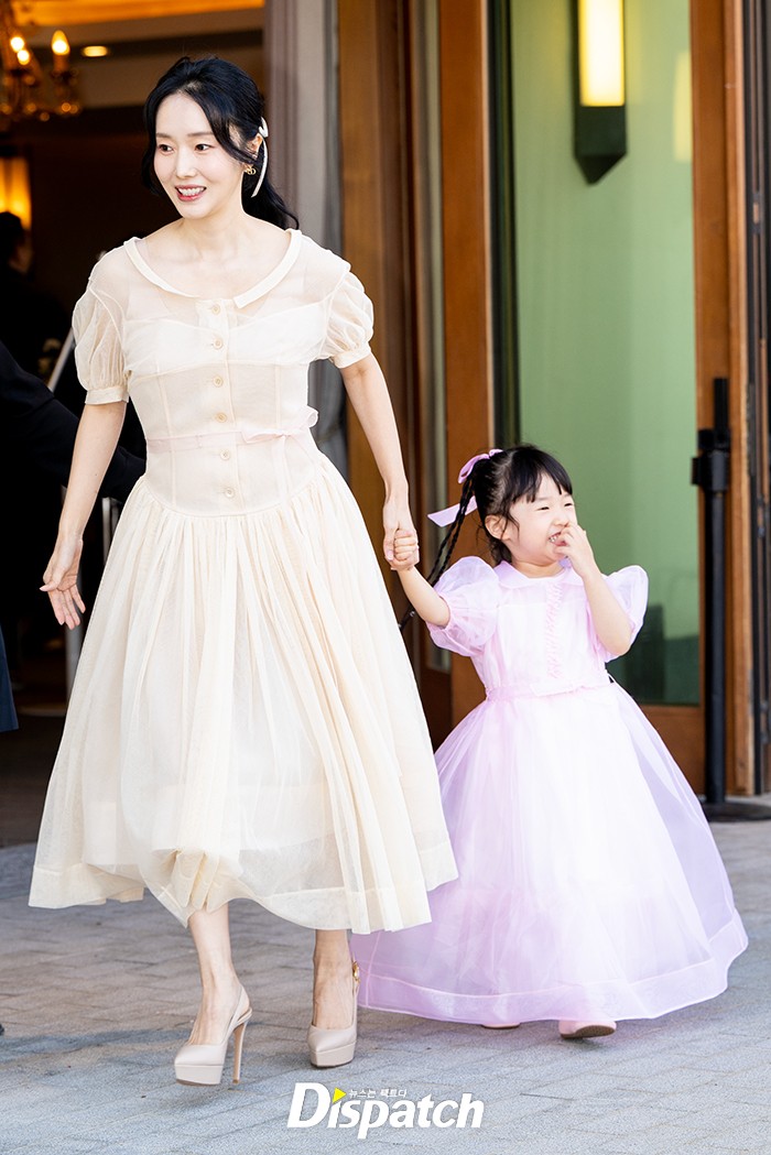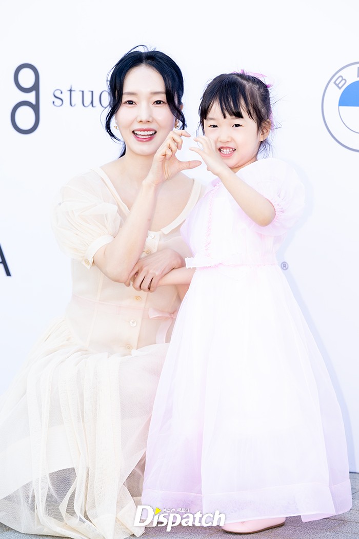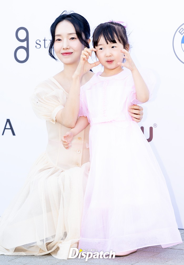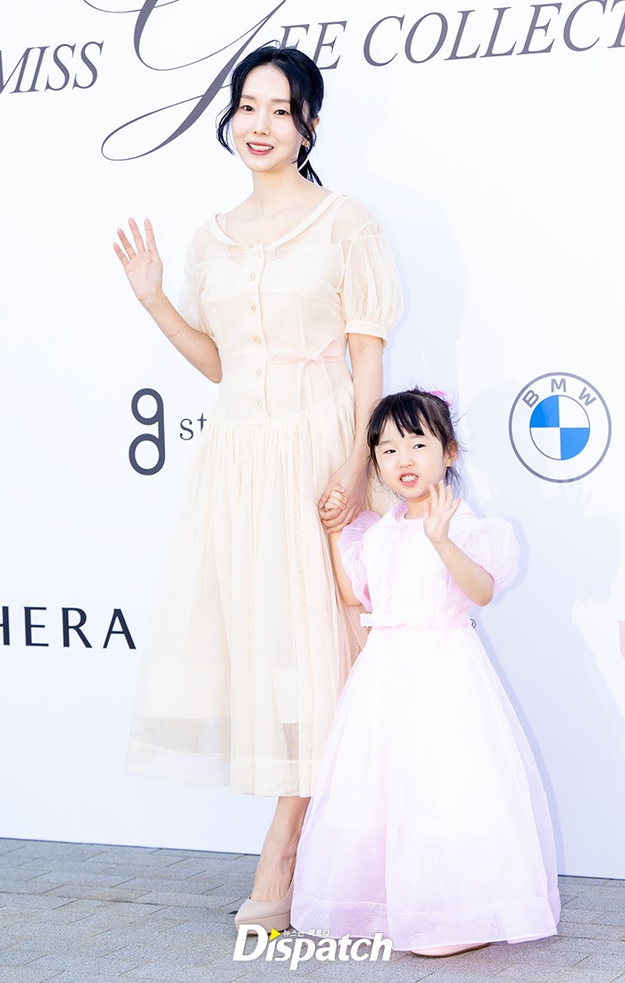 이정현은 딸과 함께 행사장 포토월에 섰다. 파스텔톤 드레스로 아름다운 모녀의 모습을 보여줬다.
