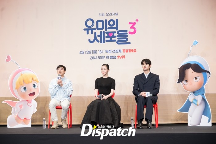 티빙 새 오리지널 시리즈 '유미의 세포들 시즌3'(극본 송재정·김경란, 연출 이상엽) 측이 7일 오후 서울 구로구 더링크 서울 호텔에서 제작발표회를 열었다. 배우 김고은, 김재원, 이상엽 PD 등이 참석했다.