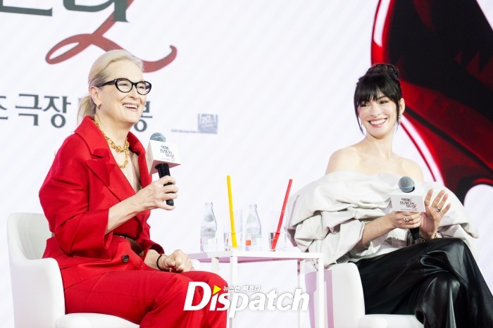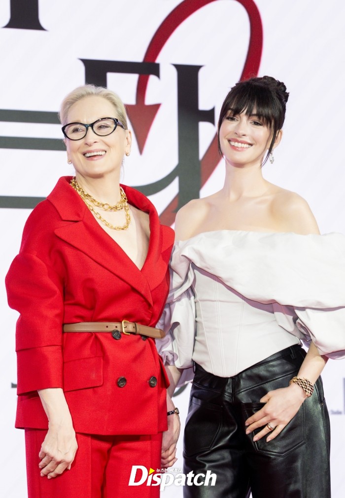 앤 해서웨이는 "1편을 할 때는 젊은 연기자로서 내가 하는 것에만 매몰될 수 있는데, 메릴을 보며 연기는 어떻게 하는 건지 배웠다"며 "이번에도 마찬가지였다. 저희의 케미는 '메릴은 정말 잘하고, 저는 감탄한다'인 것 같다"고 치켜세웠다.