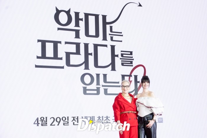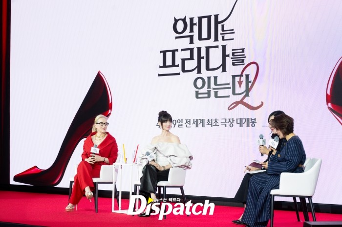 '악마는 프라다를 입는다2'(감독 데이비드 프랭클) 측이 8일 서울 포시즌스 호텔에서 내한 기자간담회를 열었다. 메릴 스트립과 앤 해서웨이가 자리했다.
