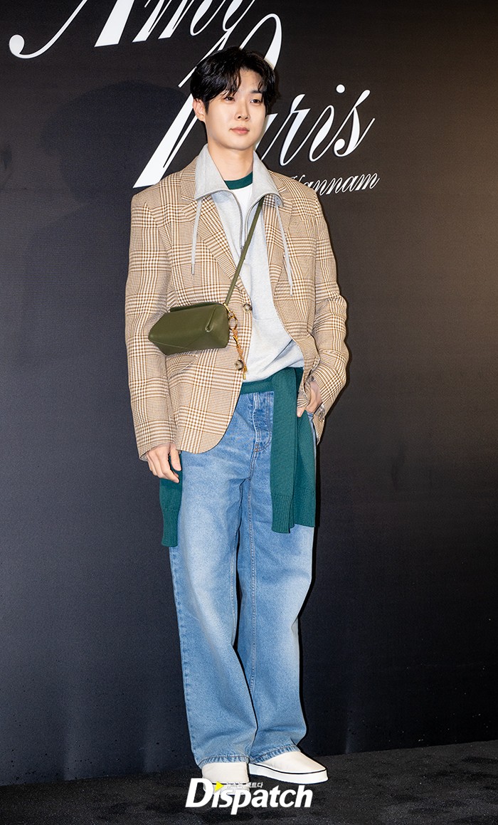 최우식은 체크 자켓과 청바지로 남친룩을 보여줬다. 달달한 미소로 여심을 사로잡았다.