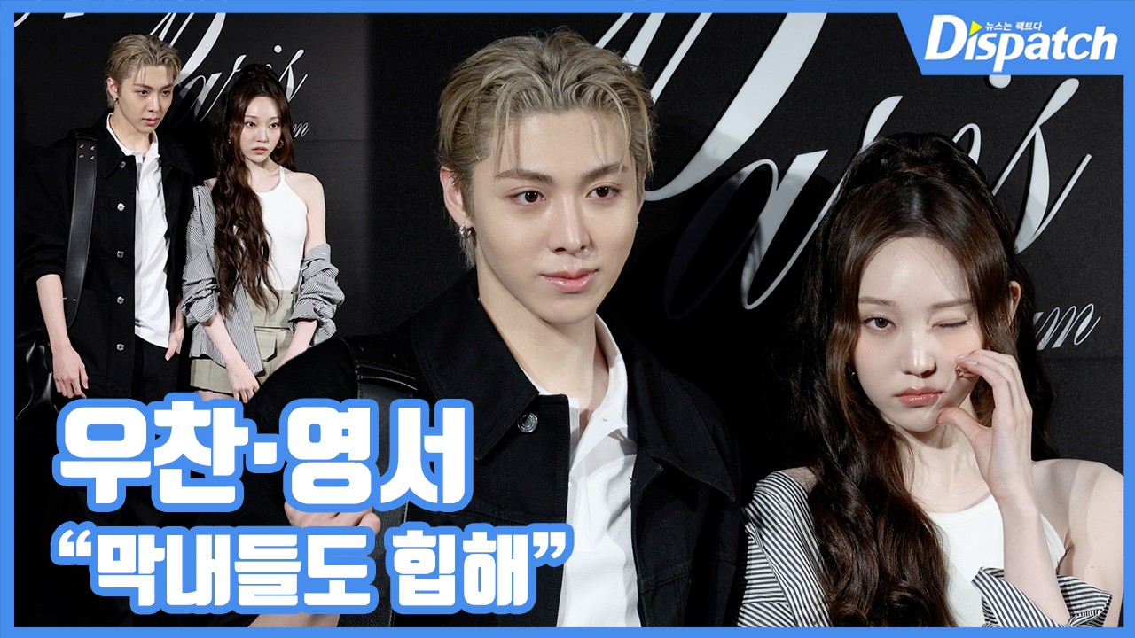 이날 우찬은 블랙 앤 화이트 스타일로 힙한 바이브를 연출했다. 영서는 화이트 민소매에 카키 컬러 미니스커트로 시크하면서도 러블리한 매력을 뽐냈다.