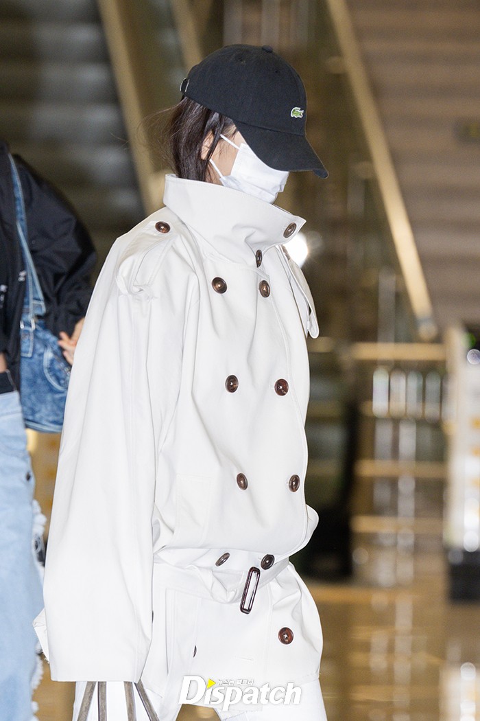 안유진은 트렌치 코트로 멋을 냈다. 공항에 모인 팬들을 위해 환한 손인사로 화답했다.