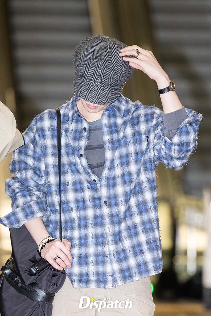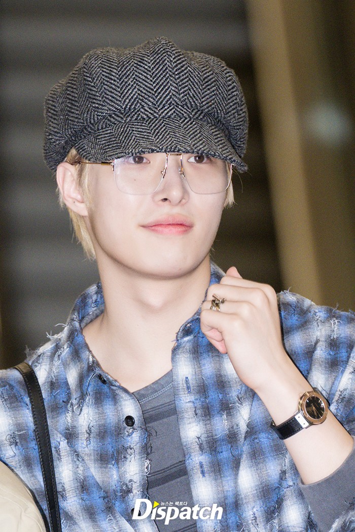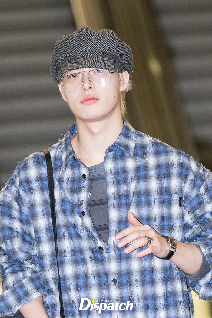 민기는 체크 셔츠와 뉴스보이캡으로 멋을 냈다. 잘생긴 비주얼이 시선을 사로잡았다.