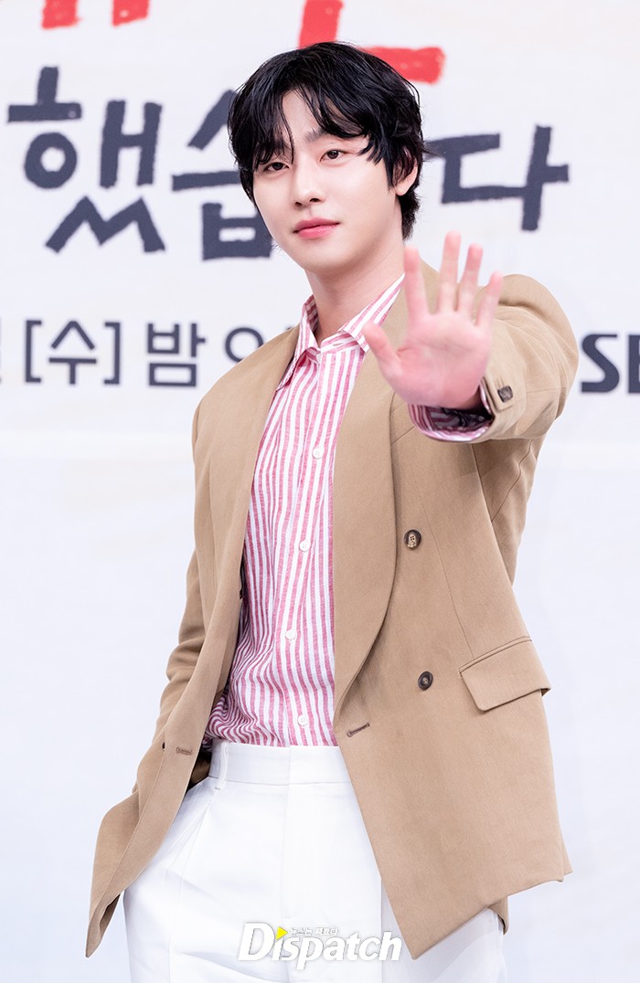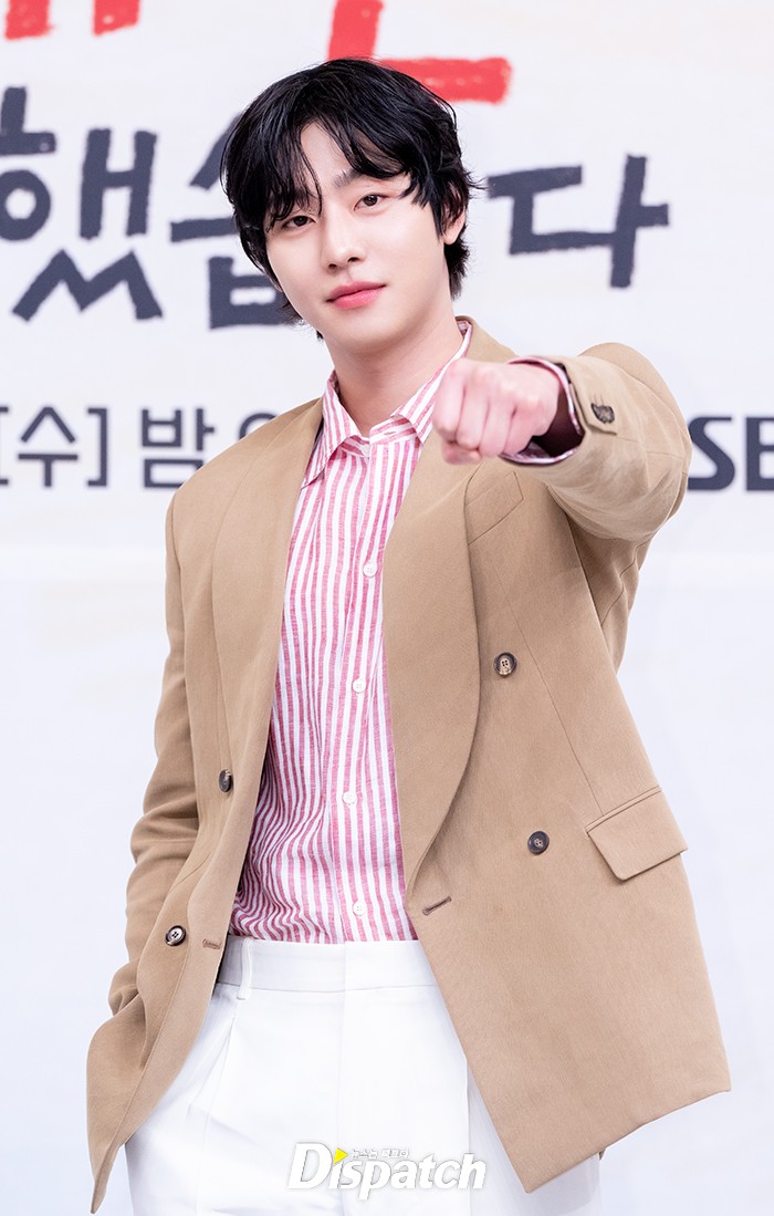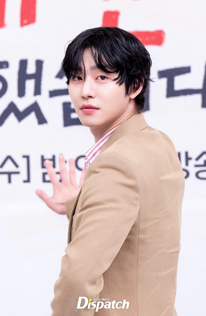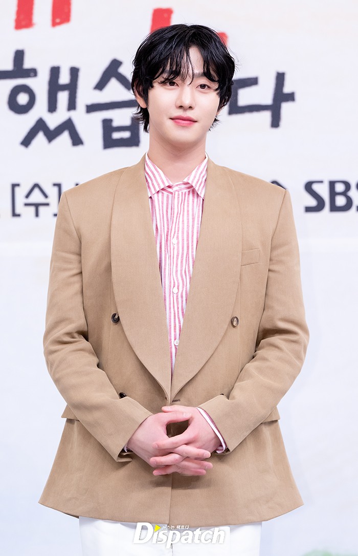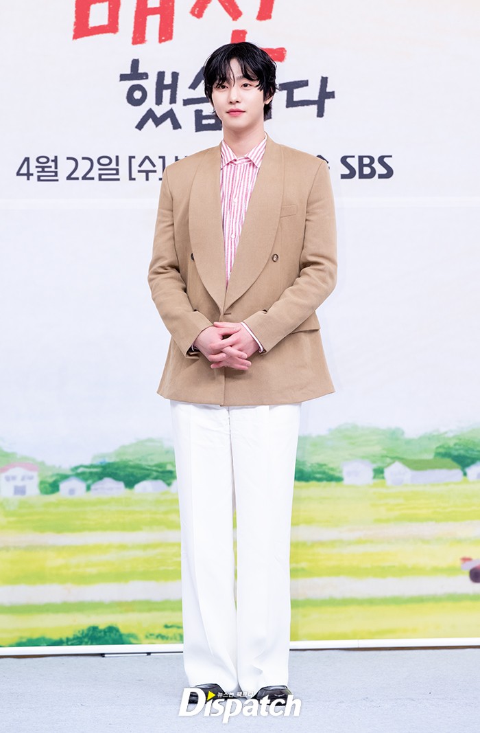 안효섭은 카멜컬러 자켓과 화이트 팬츠로 멋을 냈다. 완벽한 비주얼과 피지컬로 시선을 사로잡았다.