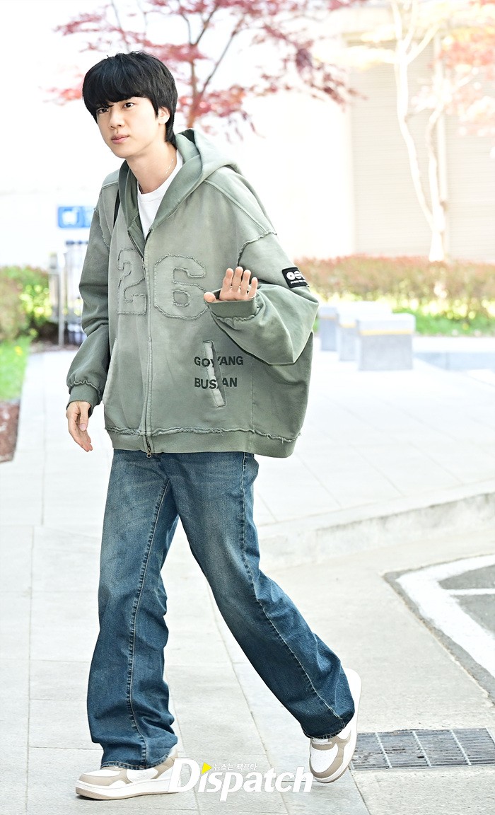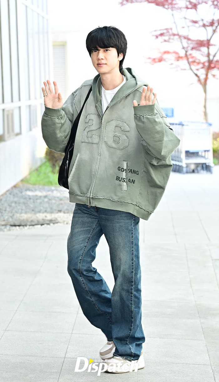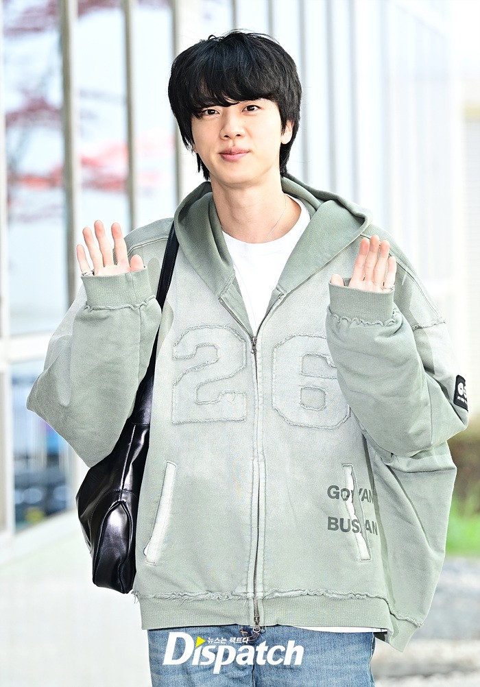 이날 출국장에 모습을 드러낸 진은 해맑은 미소로 취재진의 시선을 사로 잡았다. 공항에 모인 팬들을 위해 다양한 포즈로 화답했다.