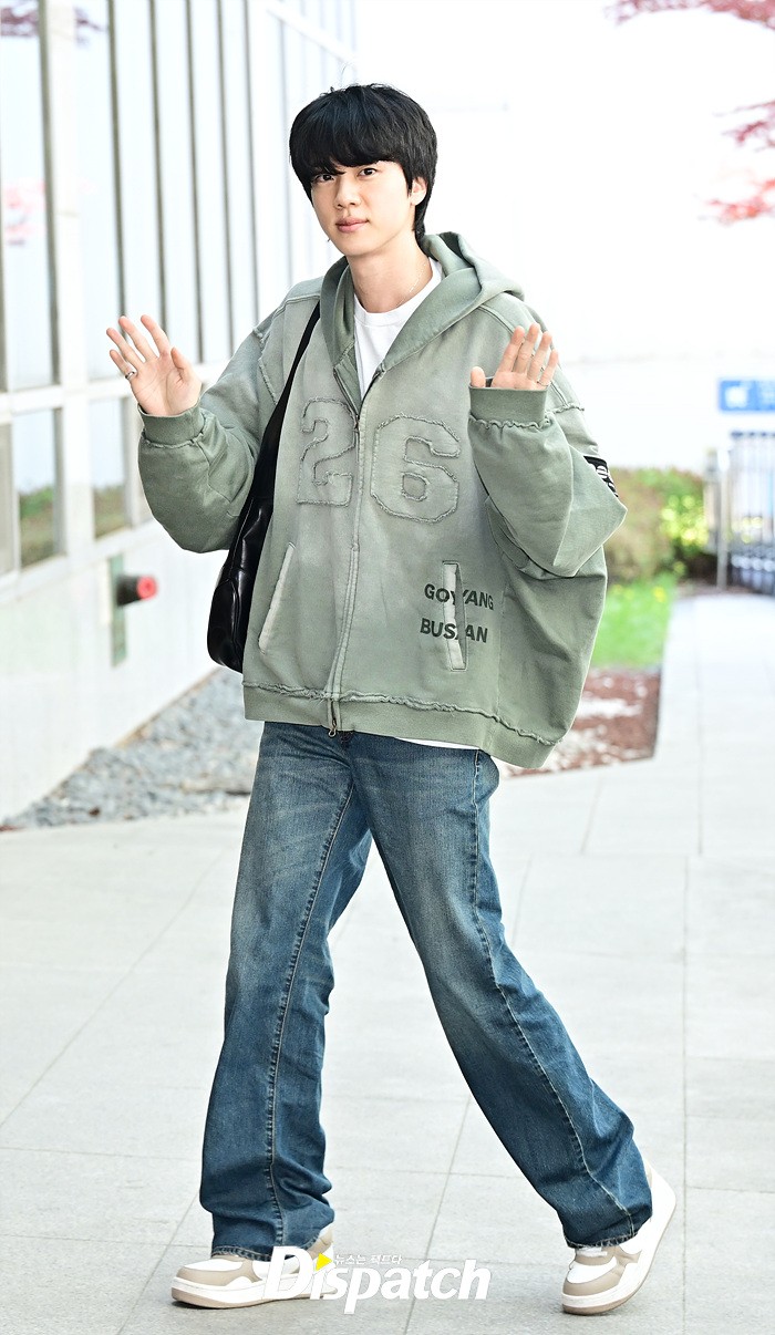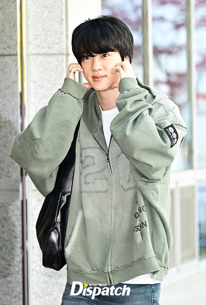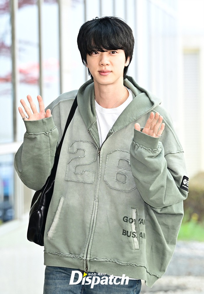 이날 출국장에 모습을 드러낸 진은 해맑은 미소로 취재진의 시선을 사로 잡았다. 공항에 모인 팬들을 위해 다양한 포즈로 화답했다.
