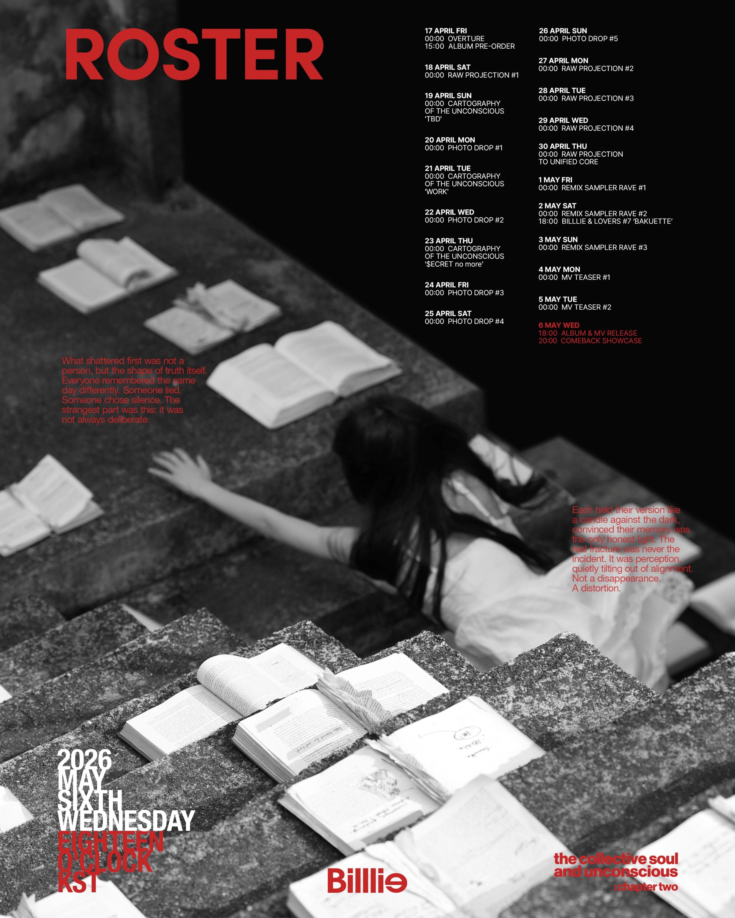 빌리는 16일 SNS에 정규 1집 '더 콜렉티브 소울 앤 언컨시어스: 챕터2'(the collective soul and unconscious: chapter two) 스케줄러를 올렸다.