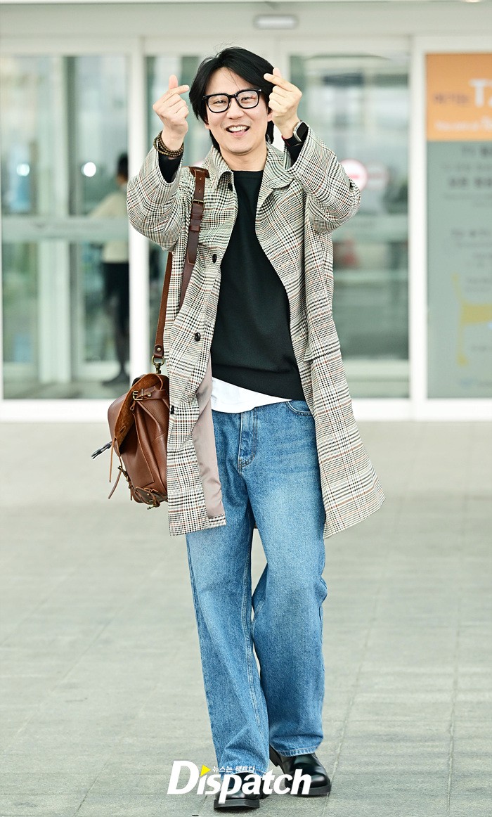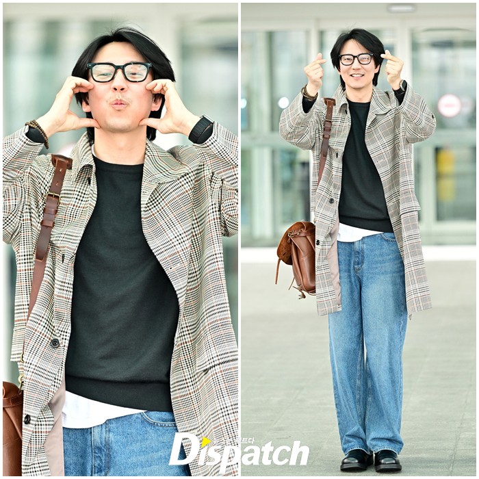 김남길은 체크 패턴의 재킷과 데님진으로 캐주얼한 공항패션을 완성했다. 공항에 모인 팬들을 위해 다양한 포즈로 감사의 마음을 전했다.