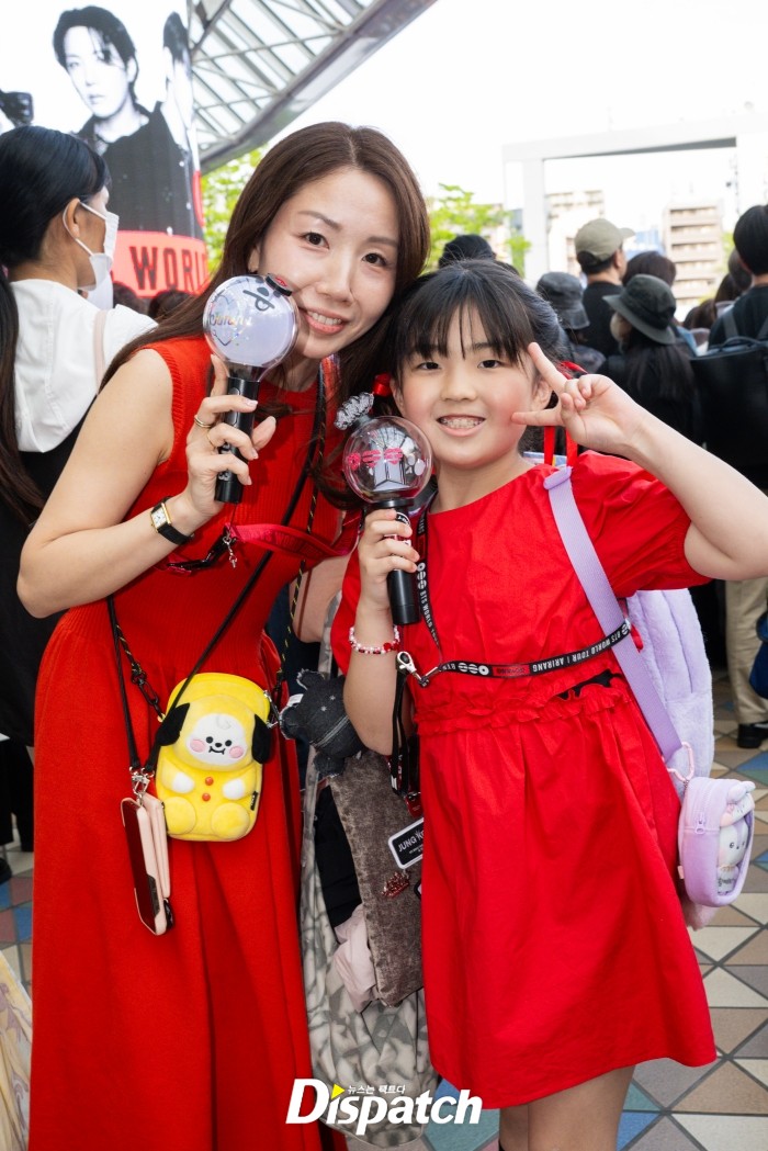 도쿄돔 메인 입구는 공연을 기다리는 팬들로 북적였다. 현장은 보랏빛과 빨강빛이 어우러진 물결로 물들었다. 가족과 함께 공연장을 찾은 ‘아미 키즈’들이 시선을 끌었다. 작은 손에 응원봉을 들고 설렘 가득한 표정으로 공연장을 향했다. 세대를 잇는 팬덤의 저력이었다.