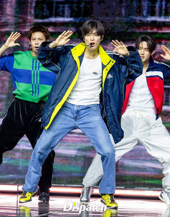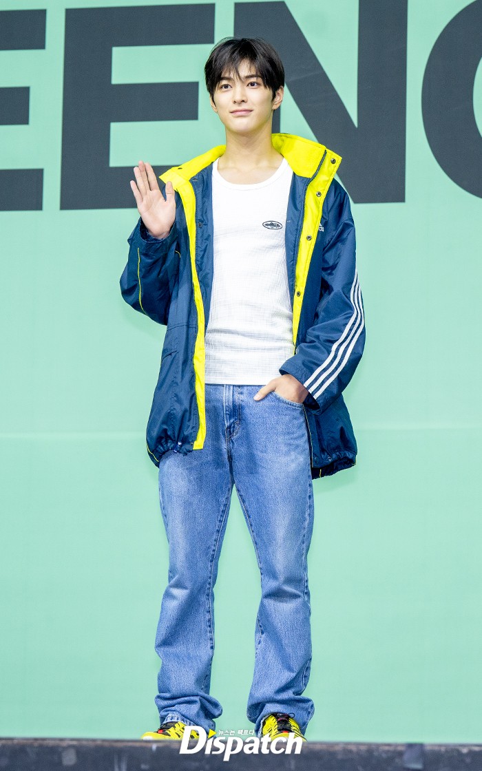 건호는 네이비 스포츠 자켓과 청바지로 멋을 냈다. 잘생긴 비주얼이 돋보였다.