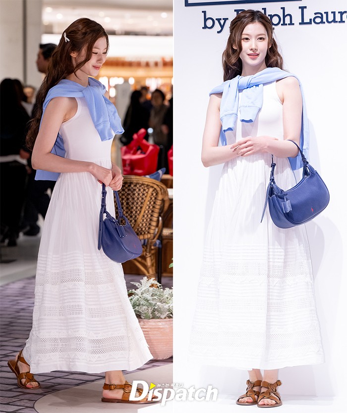 사나는 화이트 원피스로 맵시를 뽐냈다. 아름다운 미모로 시선을 사로잡았다.
