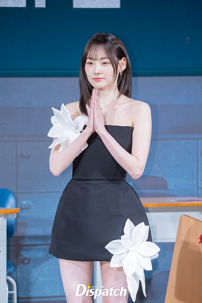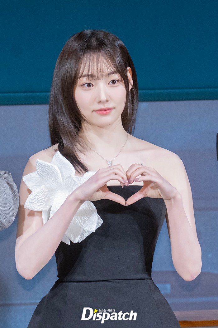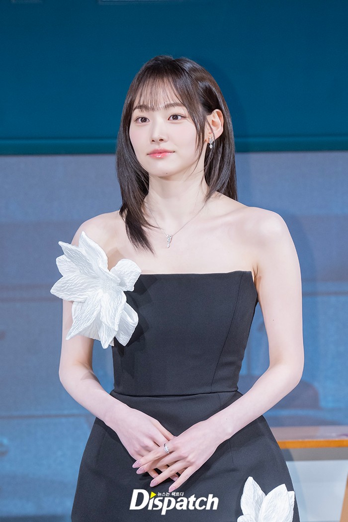 강미나는 블랙 오프숄더 미니원피스로 아름다움을 뽐냈다. 화이트 대형 코사지로 포인트를 줬다.