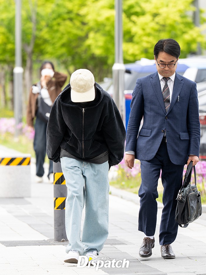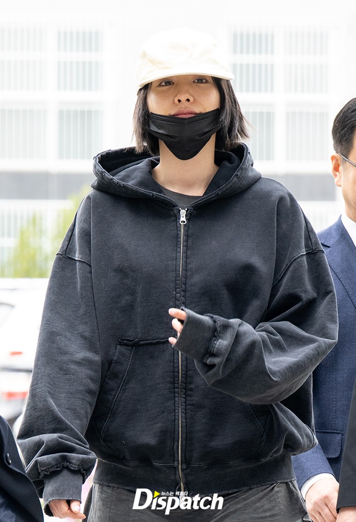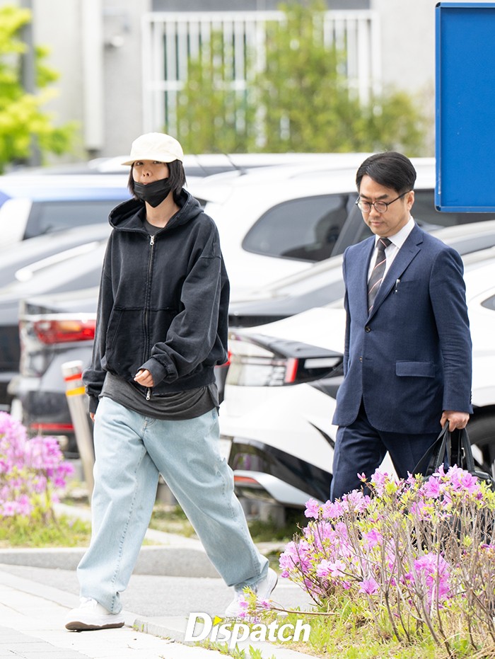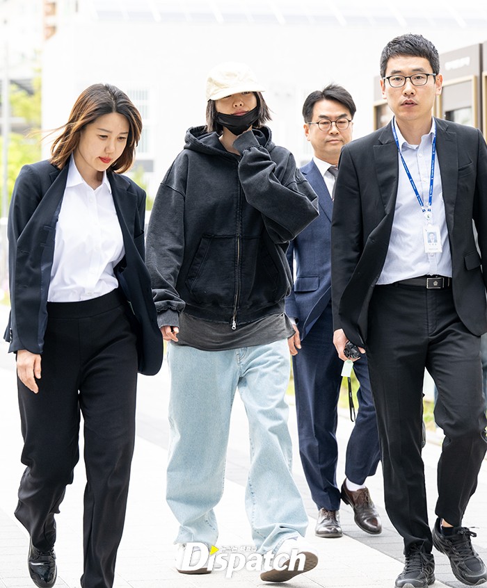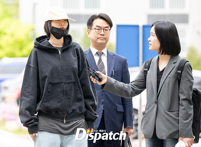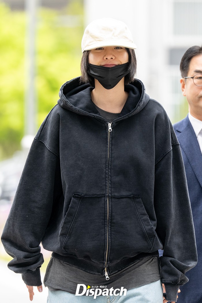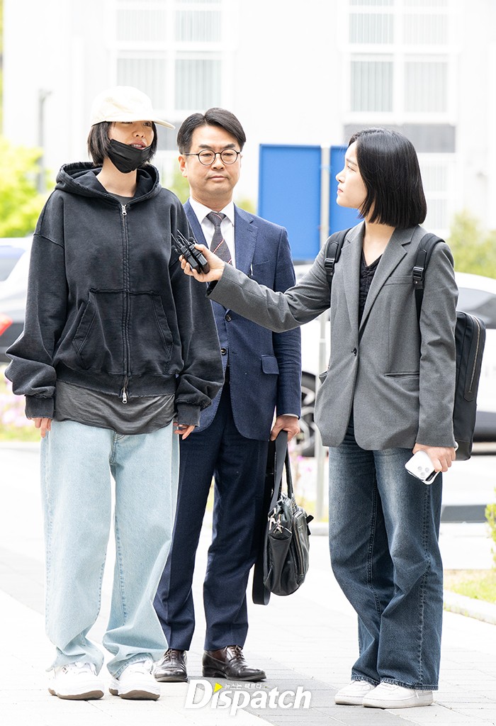 나나는 블랙 후디와 모자, 마스크로 법원에 들어섰다. 간단한 인터뷰 후 밝은 표정으로 법원으로 향했다.