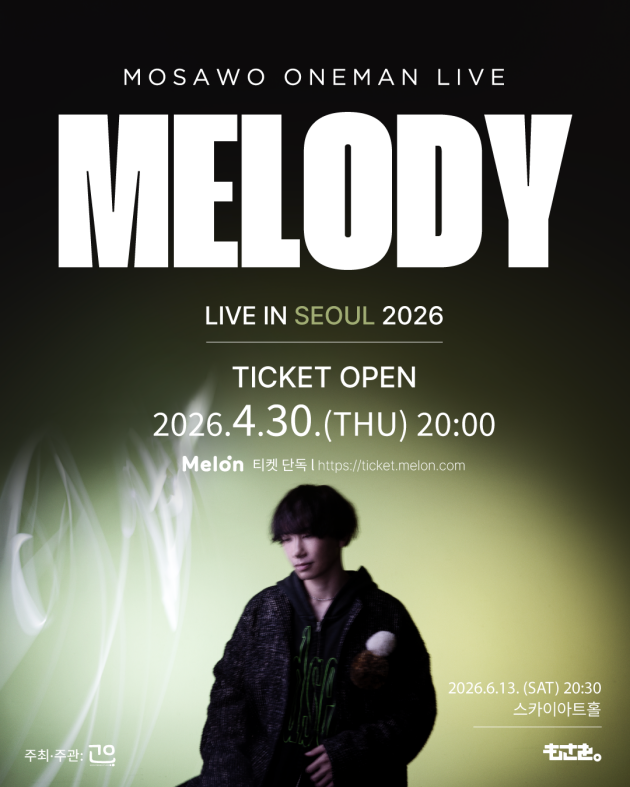 한편 '모사오 원맨 라이브 "멜로디" 인 서울' 티켓 예매는 오는 30일 오후 8시 멜론티켓을 통해 진행된다.