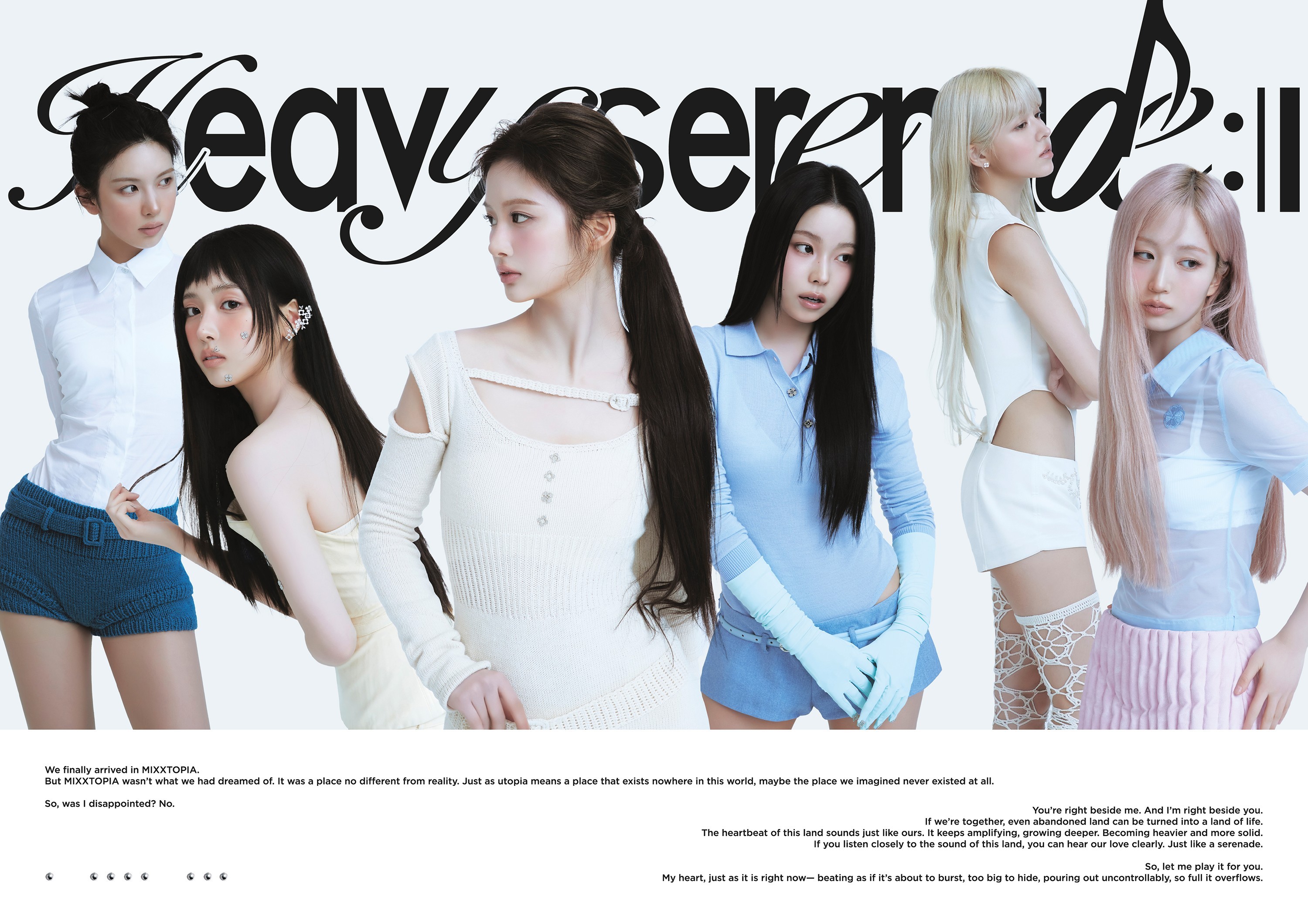 24일에는 숨길 수 없는 사랑을 테마로 한 콘셉트 포토를 보여줬다. 멤버들은 정적인 분위기 속 서로 다른 곳을 바라보며 묘한 긴장감을 자아냈다. 릴리와 해원은 시선을 교차했고, 배이와 규진은 등을 맞댔다. 설윤과 지우는 같은 방향을 바라봤다.