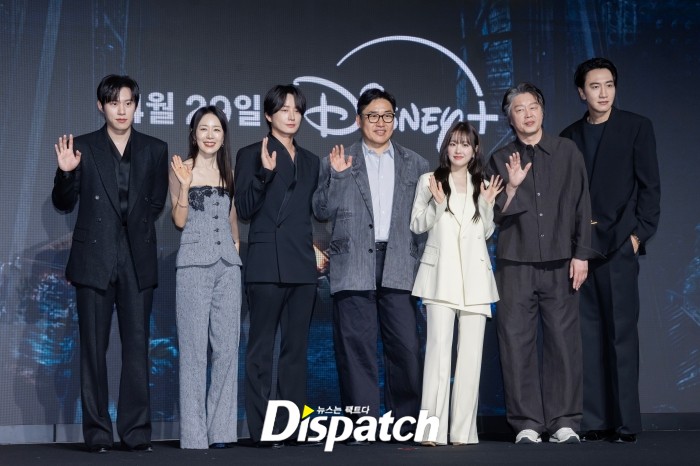 디즈니+ 새 오리지널 시리즈 '골드랜드'(감독 김성훈) 측이 27일 콘래드 서울 호텔에서 제작발표회를 열었다. 박보영, 김성철, 이현욱, 김희원, 문정희, 이광수, 김성훈 감독이 자리했다.