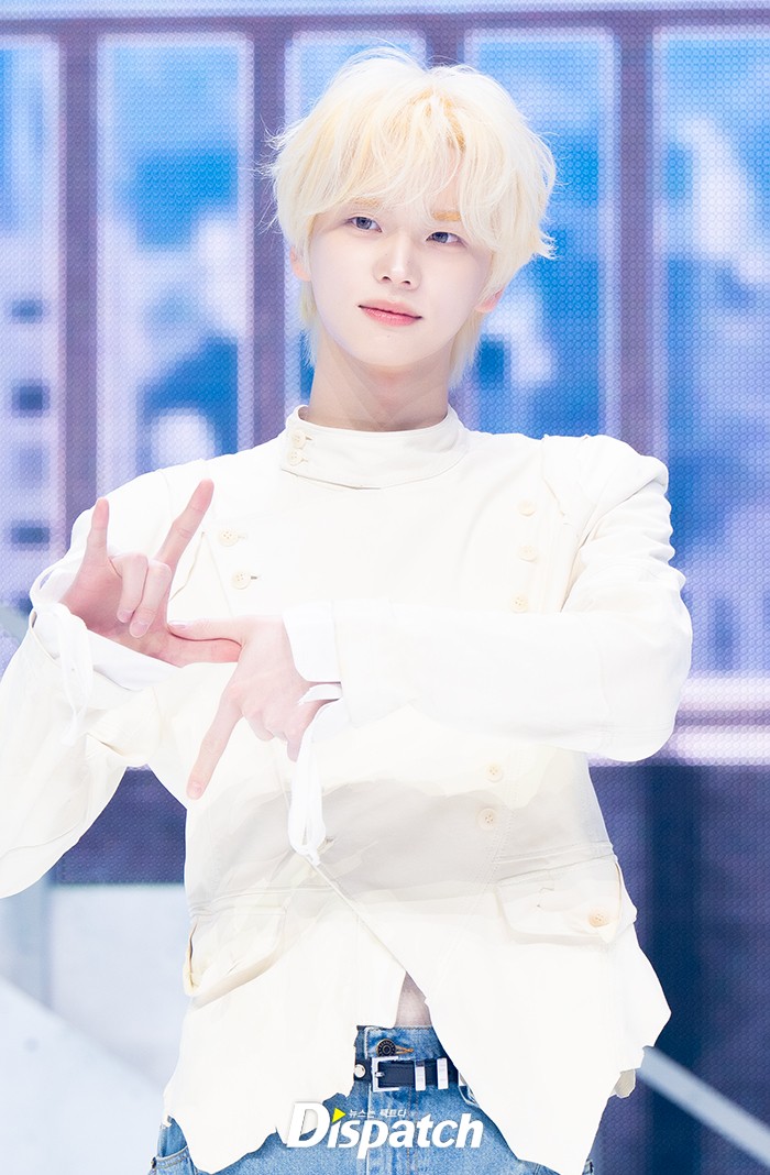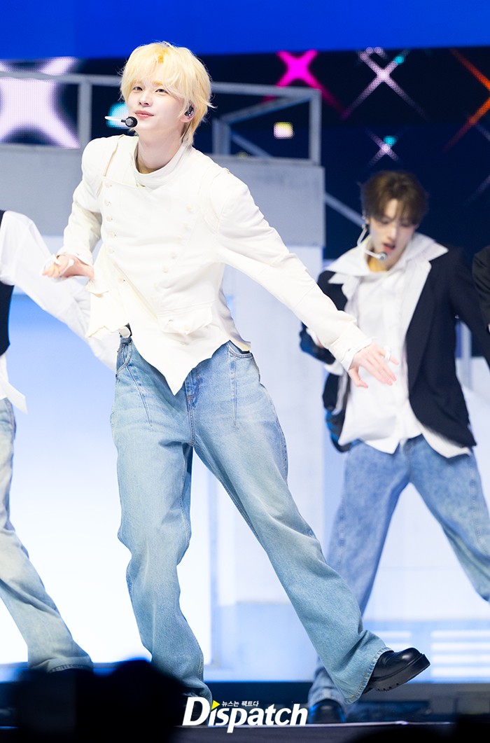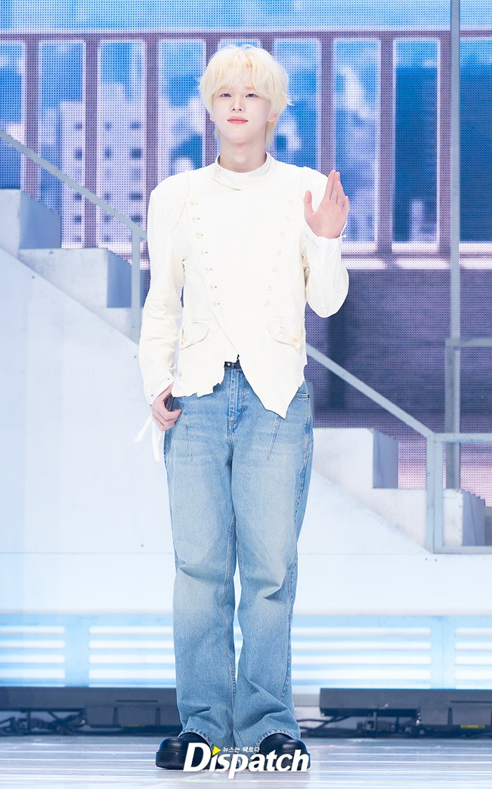 신유는 화이트 자켓과 청바지로 맵시를 뽐냈다. 잘생긴 비주얼이 돋보였다.
