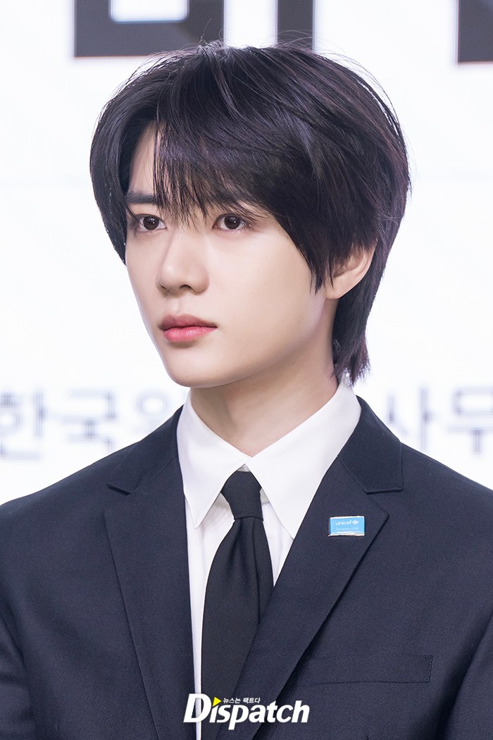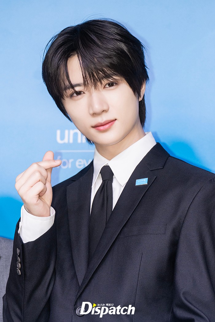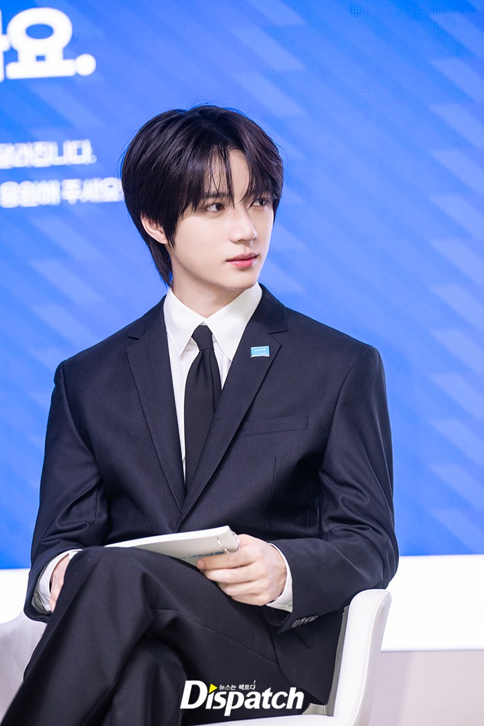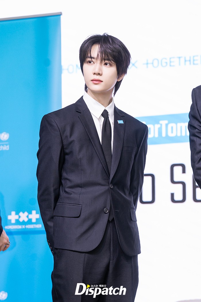 투모로우바이투게더는 블랙 수트로 멋을 냈다. 범규는 잘생긴 비주얼로 시선을 사로잡았다.