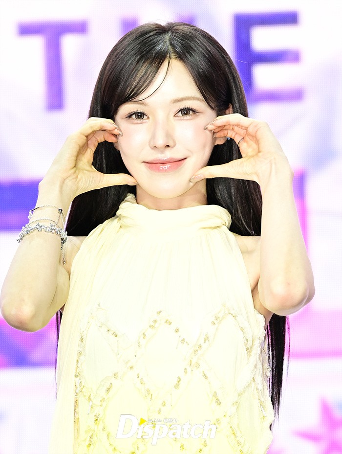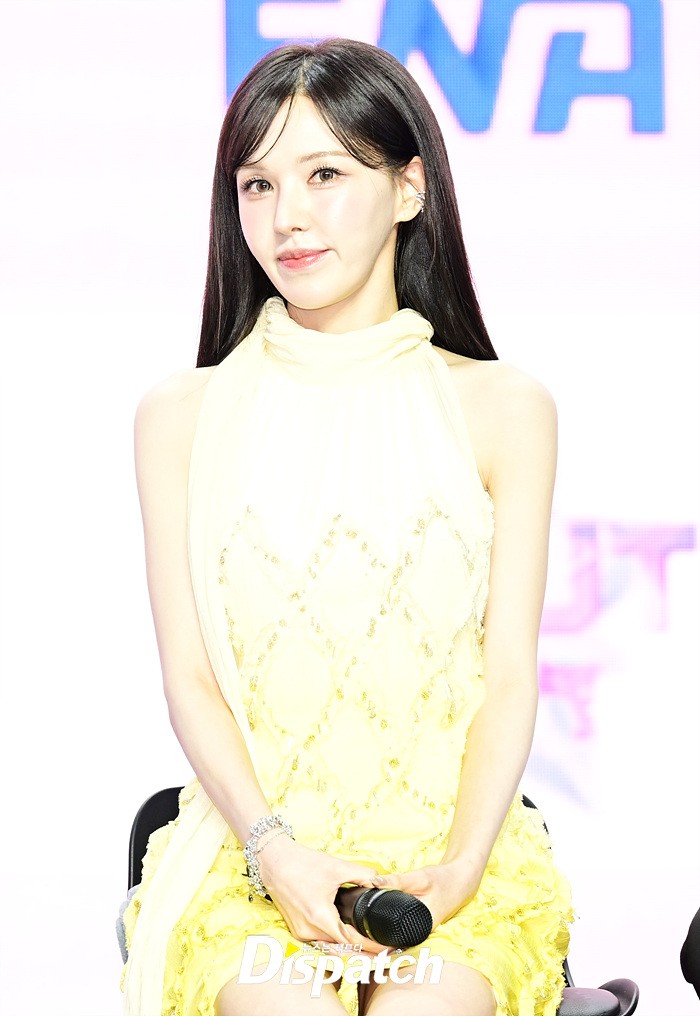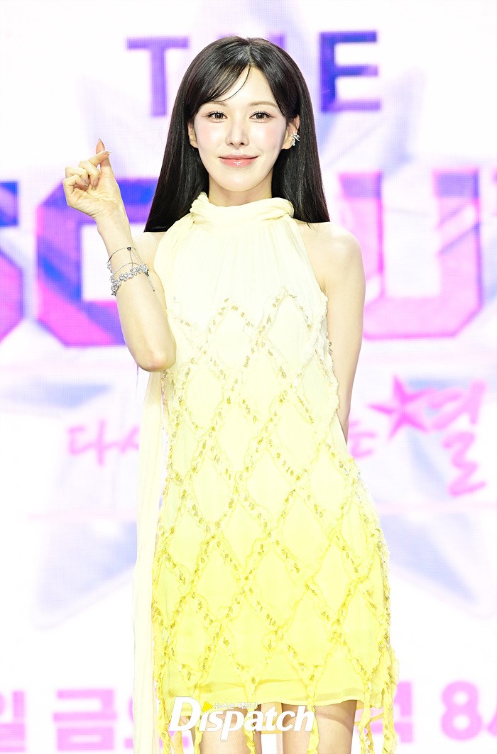 이날 기자간담회에 참석한 마스터 웬디는 옐로우 컬러의 드레스로 화사한 미모를 뽐냈다. 다양한 포즈로 러블리한 매력도 어필했다.