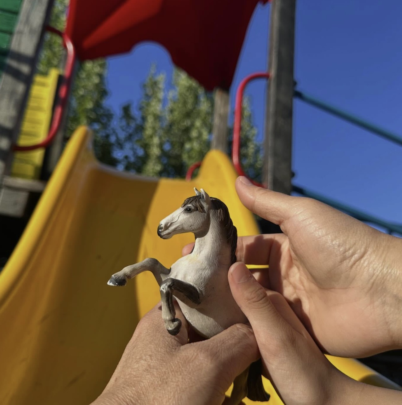 말의 해인 올해, 2째 출산이 예정되어 있는 것. 남편 김태용 감독(56), 첫째 딸과 함께 말 장난감을 들고 촬영한 사진도 첨부했다.