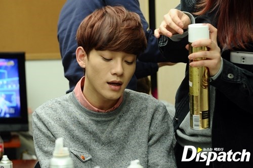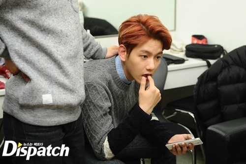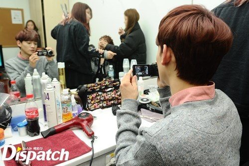 다들 만족스러운 모습입니다. 헤어, 메이크업, 의상도 다 마음에 드나보군요. 바로 그 때였습니다. 백현이 초조한 듯, 핸드폰으로 시간을 확인하더군요. 옆에 있던 첸도 거듭니다. 시간을 자꾸 확인합니다. 누군가와 만나기로 한 것 같은데요.
