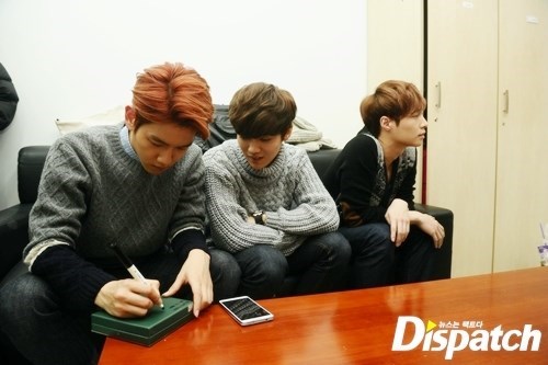 죄송하지만, 여기까지가 '디스패치'가 확인한 대기실 뒷이야기입니다. 실망하셨나요? 아님 안심하셨나요? 이날 엑소는 'CD 전달하기' 미션을 클리어했습니다. 그리고 긴장이 풀려 건치미소를 내보인거죠. 걸그룹과의 접선은, 없었습니다.