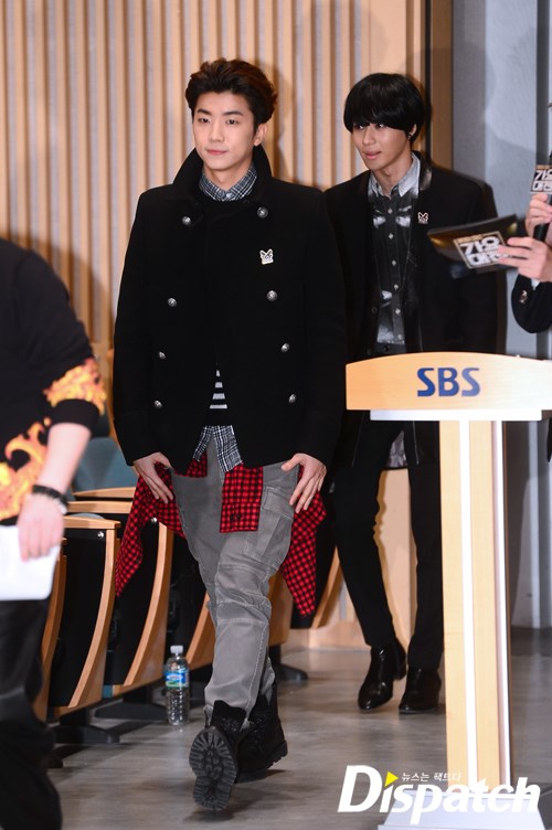 드디어 장우영이 SBS 가요대전 제작발표회에 입장했습니다. 오랜만에 공식석상에 모습을 보인 만큼 여기 저기서 플래쉬 세례가 터졌습니다. 장우영은 재치있는 포즈로 취재진에게 인사를 건넸습니다.