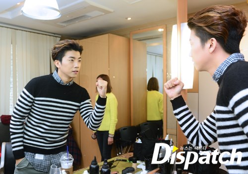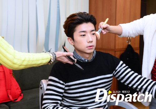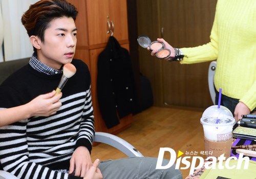 오후 1시. 서울 강남구 청담동 'JYP엔터테인먼트'에서 장우영을 만났습니다. 왜 미용실이 아니냐고요? JYP는 사옥에 분장실이 따로 마련돼 있더군요. 마침 우영은 분주하게 메이크업을 받고 있었습니다. 스타일리스트가 빠른 손놀림으로 쉐딩을 하는 중이었죠.