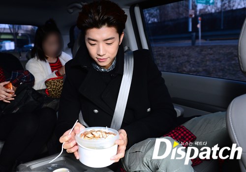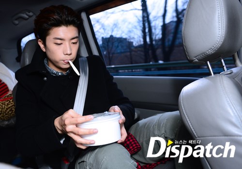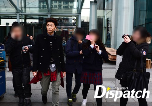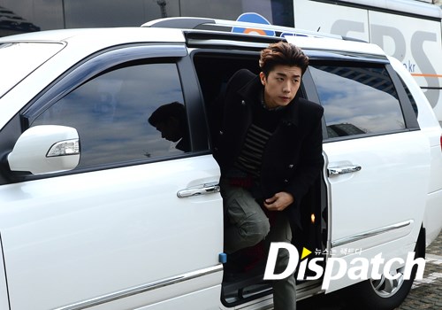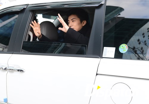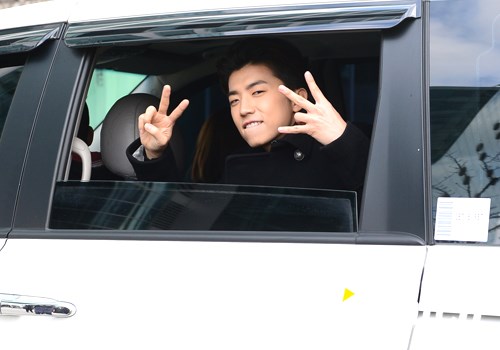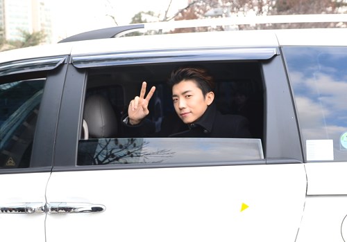 도란도란 이야기를 하는 사이, 드디어 목동 SBS에 도착했습니다. 우영이 차에서 내리자 마자 2PM 팬들이 반갑게 맞아주더군요. 몇몇 팬들은 장우영의 생존 신고(?)를 위해 일명 '대포'까지 동원했습니다. 우영은 수줍게 손인사를 전하더군요.