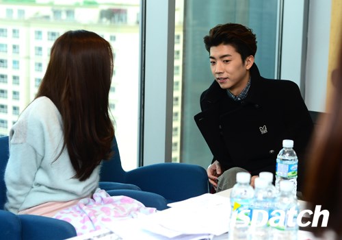손나은과 커플 촬영도 진행했는데요. 두 사람은 SBS 가요대전을 통해 '주군의 태양' 연기에 도전했습니다. 장우영은 주군(소지섭 분), 손나은은 태공실(공효진 분)을 연기했죠. 즉석에서 커플 연기를 선보이기도 했습니다.