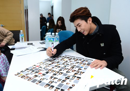 대기실에서도 여유만만했습니다. 이날 우영은 함께 무대에 오를 '샤이니' 태민, '에이핑크' 나은, '걸스데이' 민아와 반갑게 인사를 나눴습니다. 익살스러운 표정으로 포스터에 자신의 사인도 했고요. 분위기를 유쾌하게 만드는 남자였죠.