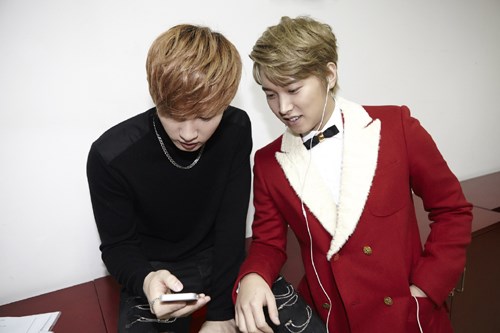 은혁과 성민은 다정 돋습니다. 성민은 음악을 들으면서 긴장을 풀었는데요. 그 옆에 앉은 은혁은 핸드폰 삼매경에 빠져있습니다. 성민은 자연스럽게 은혁의 다리에 손을 얹고, 핸드폰 화면을 함께 바라봤는데요. 알고보니 리허설 무대를 촬영한 영상을 체크하고 있었다는군요.