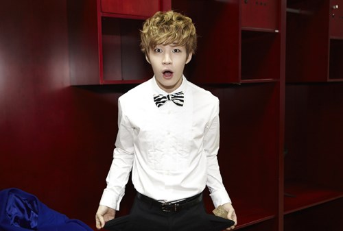 ▶ 대기실 안 깨알포즈 : 같은 시각, '슈주M'은 리허설을 마치고 대기실에 있었습니다. 각자의 방법으로 시간을 보냈는데요. 얼마 전, 한국에서 솔로 앨범으로 활동했던 헨리. 카메라를 보자 장난기가 발동했습니다. 바지 주머니를 양 손으로 빼고, 익살스러운 표정을 짓네요.