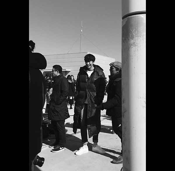이광수는 자신의 인스타그램을 통해 촬영 현장 사진을 올렸다. 두꺼운 롱 패딩을 입고 넘사벽 기럭지를 드러낸 모습이였다.