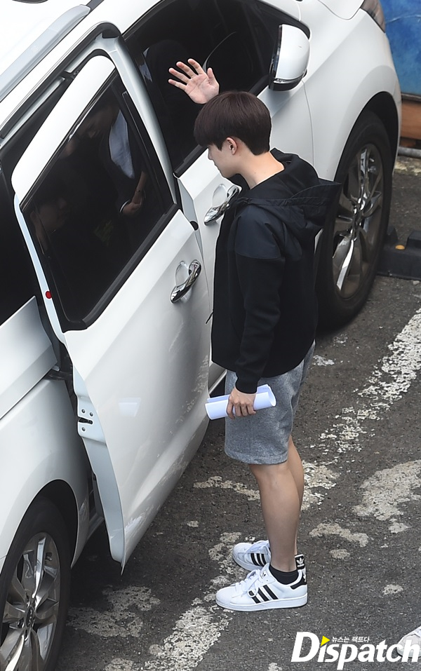 부산의 유명 대구탕 집에서 식사를 마치고 나오는 디오를 우연히 만났습니다.