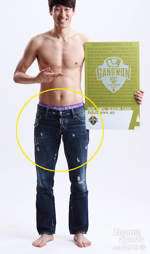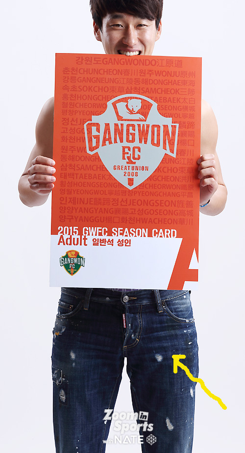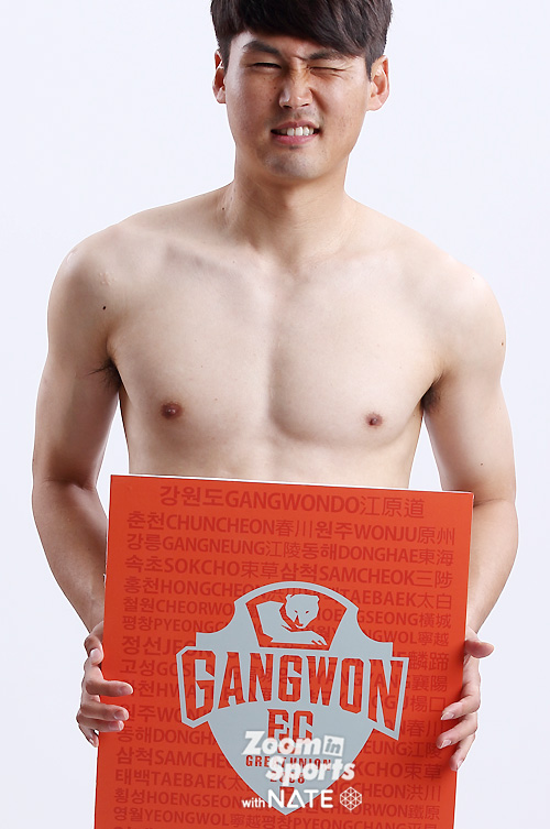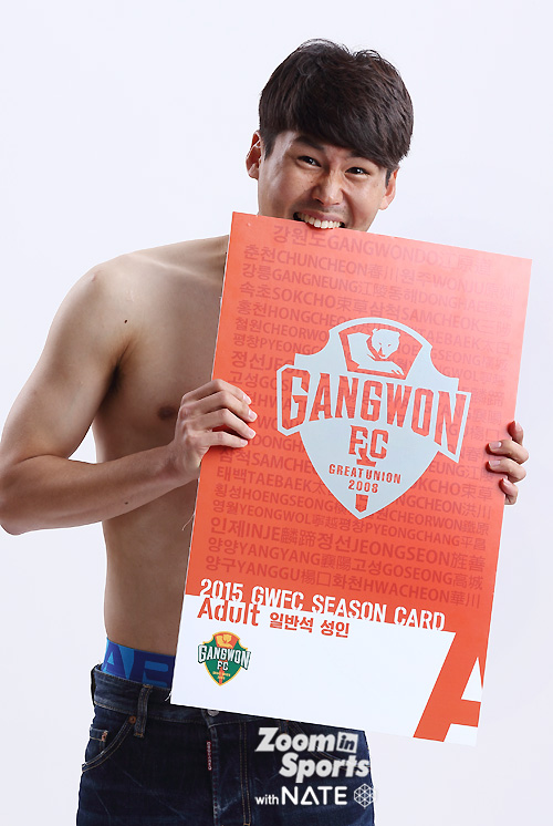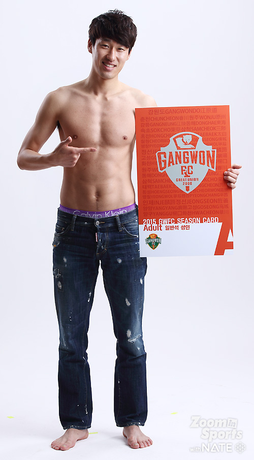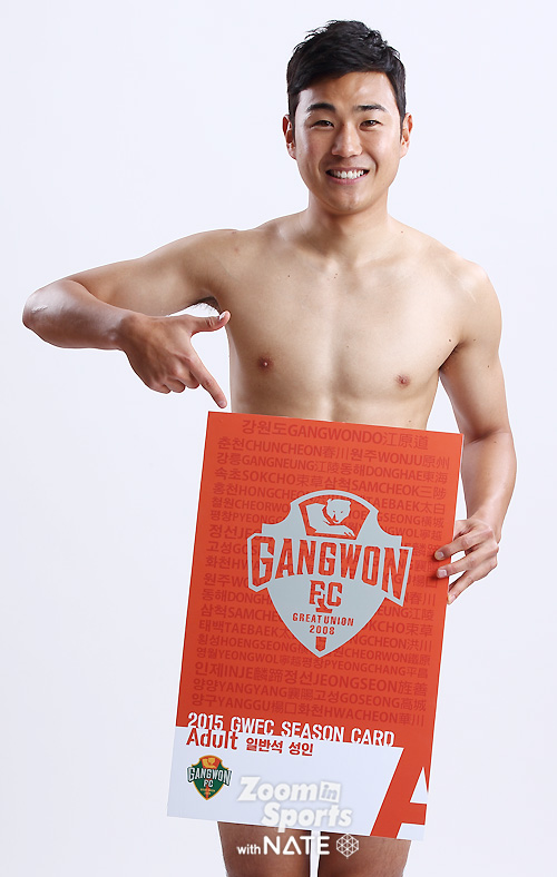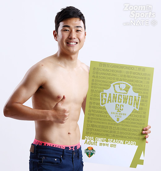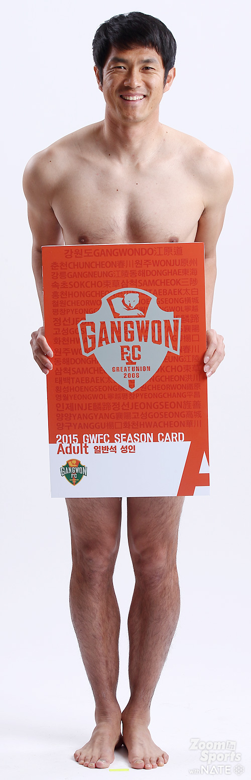임은주 대표가 강조한, 강원FC 전직원 영업사원 프로젝트 '벗어, 다벗어!'가 순조롭게(?) 진행되고 있었다. 연간회원권판매에 적극 참여한 강원 선수들의 스튜디오 촬영컷이었다. 중요한 건, "벗을거면 속옷까지 다벗어!".