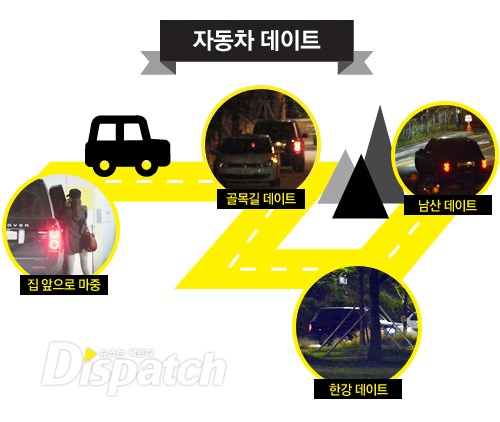 두 사람은 단 한 번도 차 밖에서 데이트를 즐긴 적이 없다. 그 흔한 편의점 한 번 들리지 않았다. 이승기와 윤아를 목격한 장소는 각자의 아파트 주차장. 이승기가 윤아를 픽업할 때, 그리고 헤어질 때만 볼 수 있었다.