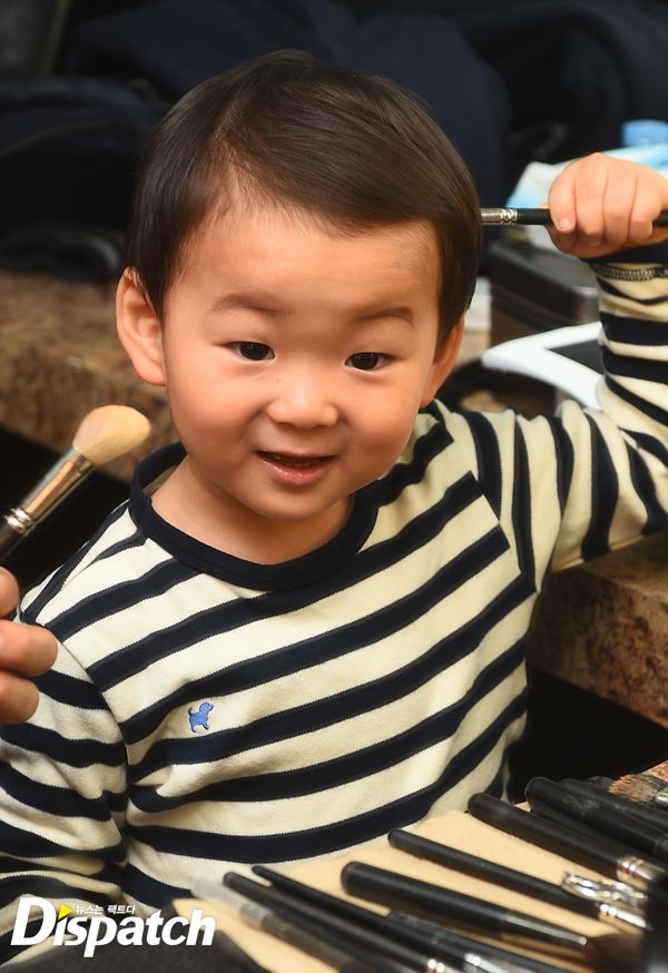 삼둥이의 호기심도 최고조에 달했습니다. 메이크업 도구가 신기했는지 뚫어져라 쳐다봅니다. 물론, 구경만으로는 부족하겠죠? 직접 시연까지 나섰습니다.