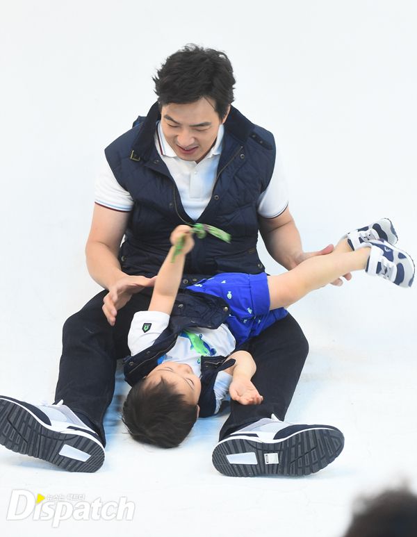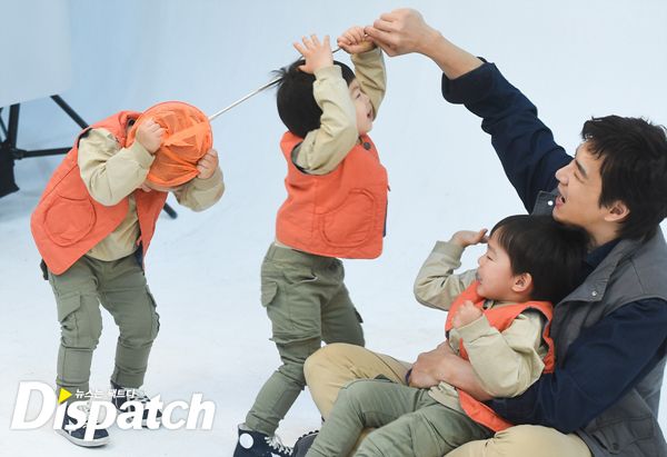 삼둥이는 더욱 더 신났습니다. 아빠 등에 올라타기도 하고 팔에 매달리기도 했습니다. 송일국도 촬영은 잠시 미뤄두고 본격적으로 놀아줍니다.
