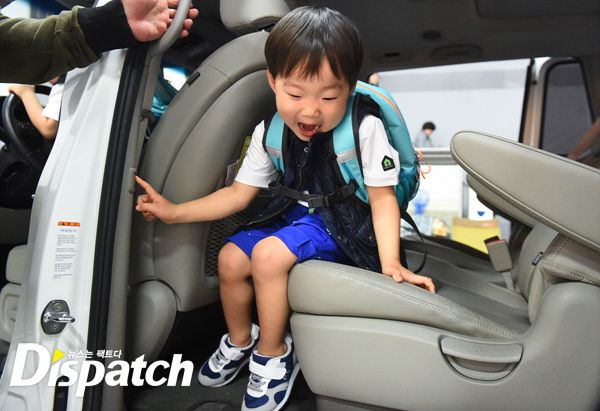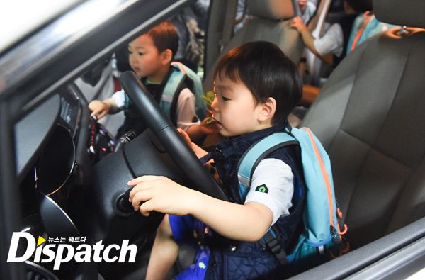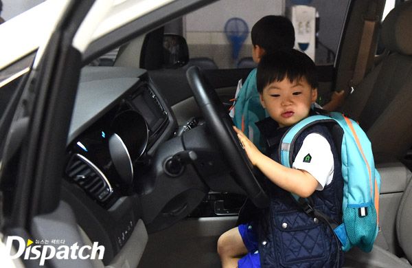 이번에는 세트장 한 쪽에 세워져있는 차에 올라탔습니다. 삼둥이의 차 사랑은 방송을 통해서도 많이 알려져 있는데요.