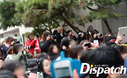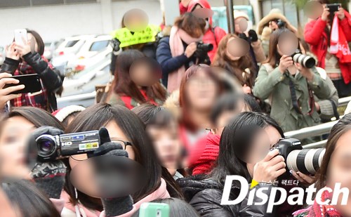 그런데 팬들 분위기 또한 심상치 않습니다. 여기저기 흩어져있던 소녀팬들이 모여들기 시작했습니다. 그리곤 각자 준비한 '대포'를 들어 카메라에 장전(?)합니다. 머지 않아 함성 소리도 내지릅니다.
