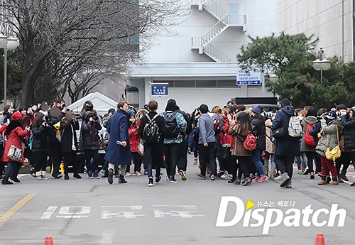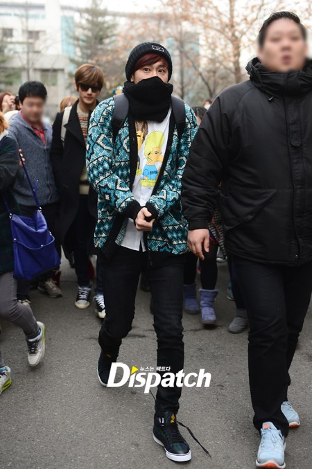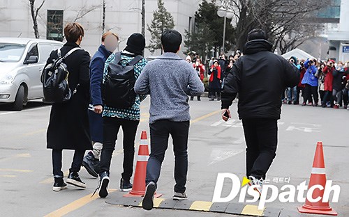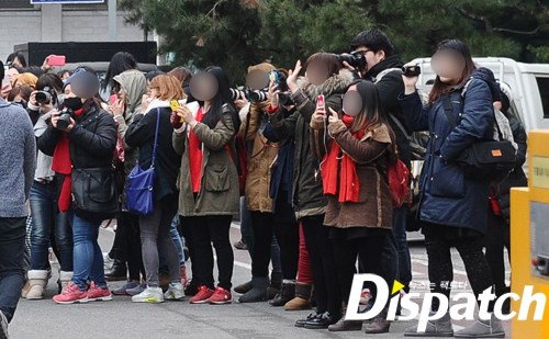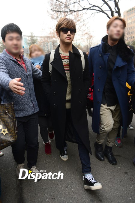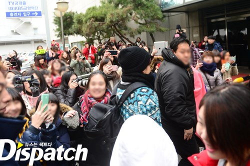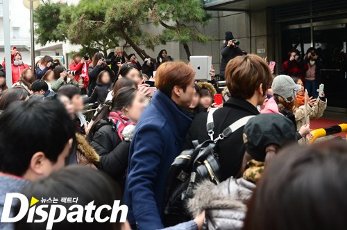 밴에서 내리자마자 깜짝 놀란 눈치입니다. 그도 그럴 것이 방송국 앞에 모인 팬들은 약 100여명. 한 겨울 이른 새벽부터 오빠를 기다리던 팬들입니다. 동방의 위엄, 팬덤의 화력을 엿볼 수 있었죠. 게다가 다국적 소녀팬들까지…. 살아있습니다.