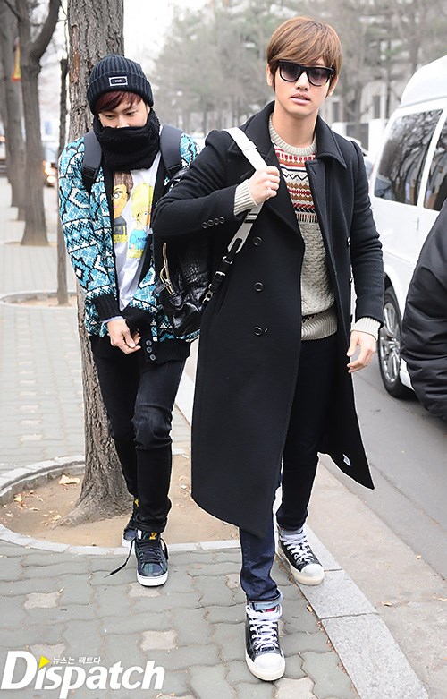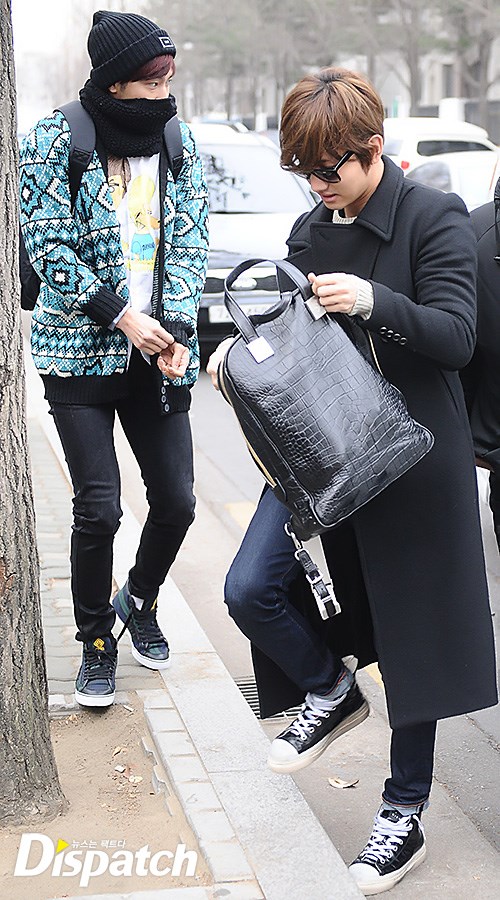 최강창민은 댄디보이입니다. 네이비 컬러의 롱코트에 니트, 청바지를 입었습니다. 훈대딩 포스가 느껴지네요. 아침 생얼은 선글라스로 살짝 가렸고요. 186cm 장신답게, 깔창도 필요 없습니다. 심플한 컨버스로 출근길 패션을 종결합니다.