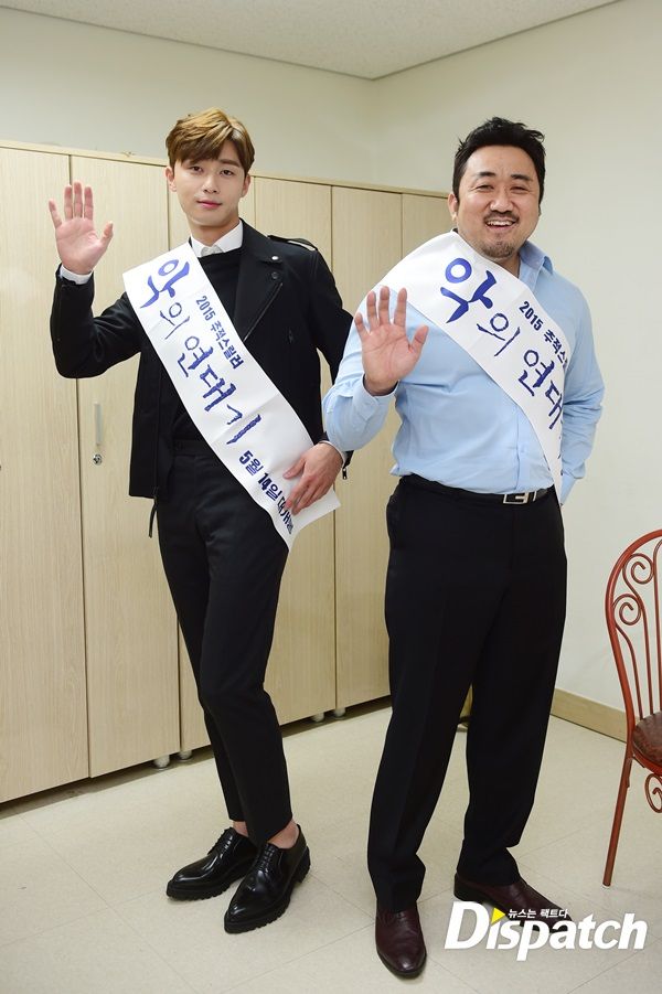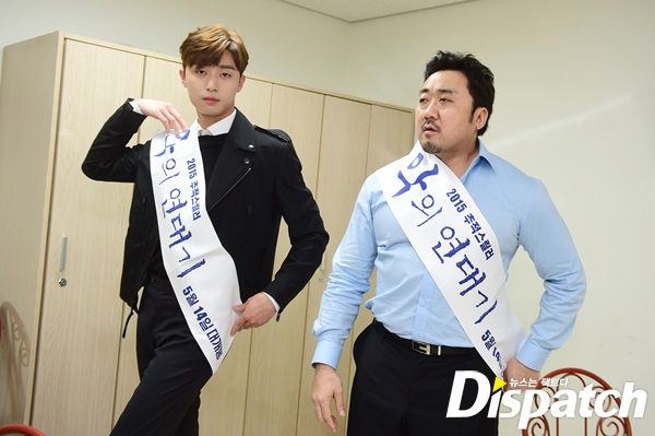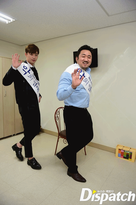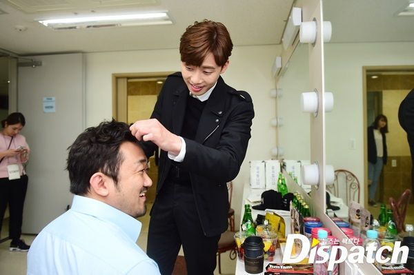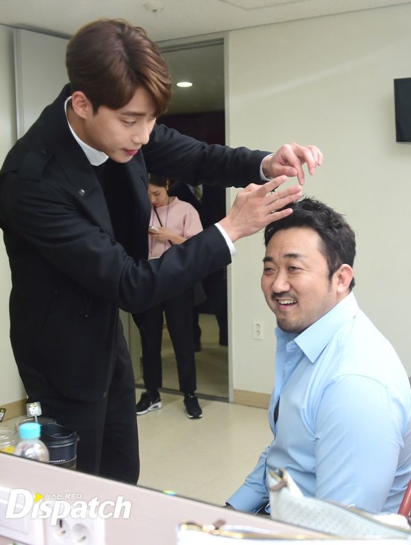 그 때, 후배 박서준이 귀신같이 나타났습니다. 누가 시키지도 않았는데, 마동석의 스타일리스트를 자처했습니다.