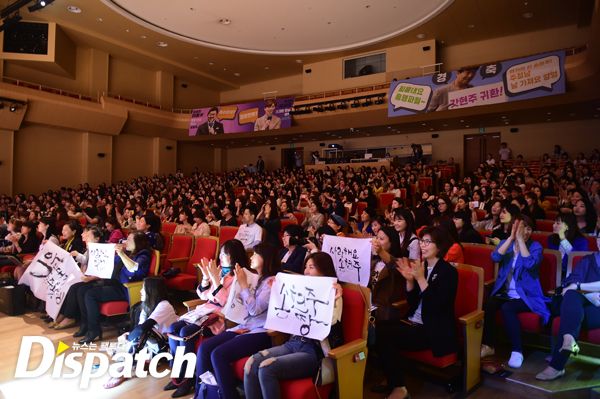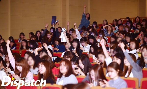 드디어 쇼케이스가 시작합니다. 약 700명의 여성 관객이 모였습니다. 각종 플래카드는 물론, 대포 카메라도 있습니다. 아이돌 못지 않는 열기입니다.