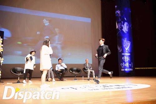 손현주는 일어서서 몸을 풀었습니다. 형사 캐릭터에 빙의한 모습인데요. 표정도 예사롭지 않았습니다. 그리고 격한(?) 팬서비스~.