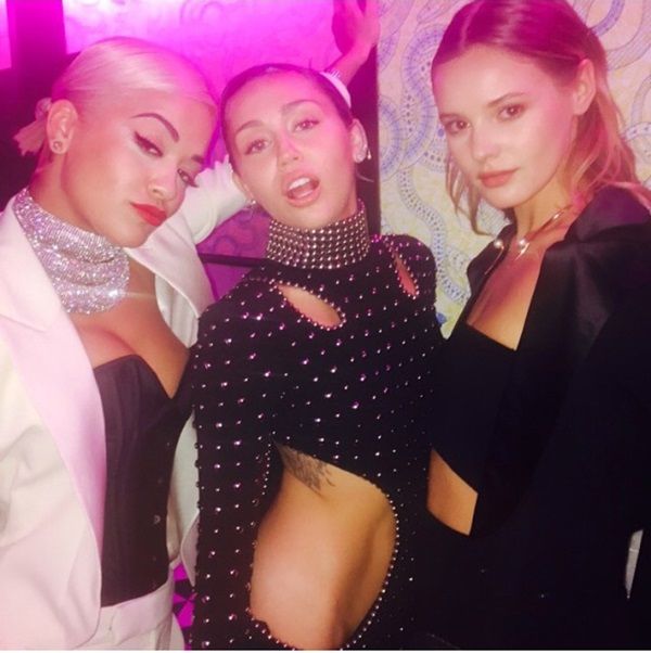 마일리 사이러스는 과감함이 돋보였다. 도트 금속 장식이 박힌 블랙 드레스를 입었다. 목을 덮는 네크라인은 독특했다. 하이라이트는 깊게 파인 허리 컷 아웃 드레스. 속옷을 입지 않아 은밀한 부분이 보일듯 말듯 아찔했다.