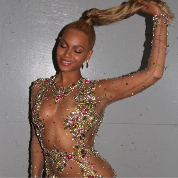 먼저 비욘세는 파격적인 전신 시스루 드레스로 시선을 끌었다. 큐빅 디자인으로 중요 부위만 가렸다. 매끈한 등라인과 애플힙을 자랑했다. 살색의 향연이었다.